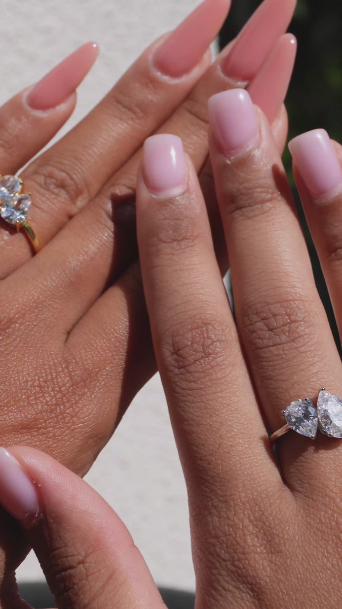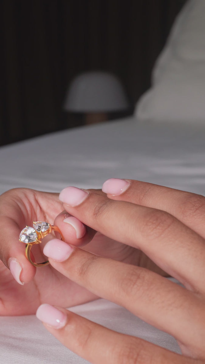 A symbol of connection and elegance, the Soulmates Ring is designed to celebrate the bonds that matter with yourself or with someone you love. Its twin pear-cut stones capture the brilliance of a diamond, creating a refined sparkle that feels both timeless and personal.